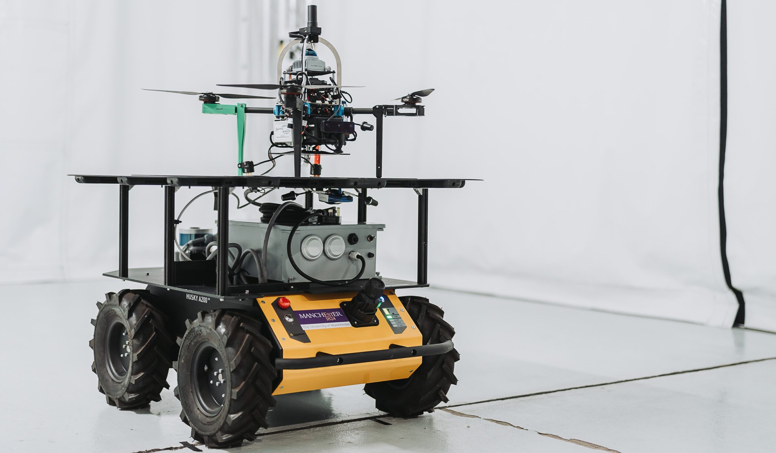 Next, we look to the air. Drones are proving transformational for high up inspection. However, they are severely limited because their batteries don’t last long in flight. Two University of Manchester projects are trying to address this.