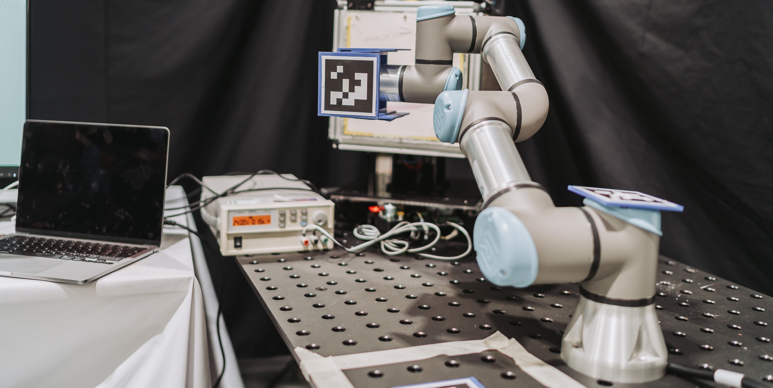 By using a haptic controller and spring-loaded platform, the robot can achieve human levels of pressure control when performing the polishing. The longer-term goal is to automate much of this process.